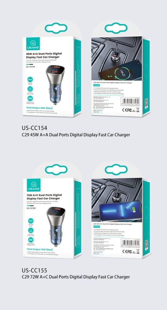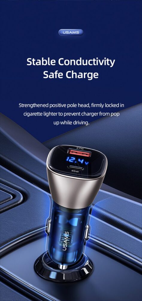 C29 USAMS 72W A+C Fast Charge მანქანის დამტენი სწრაფი ტენვის ფუნქციით, Type C და USB შესაერთებლით