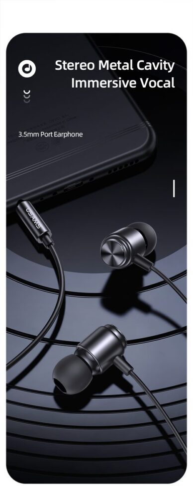 USAMS -ის ფირმის კაბელიანი ყურსასმენი, კაბელის სიგრძე 1.2 მ.