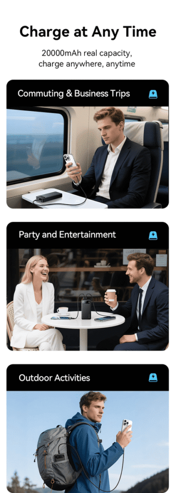 ④ 20000mAh big capacity, provide sufficient power.
