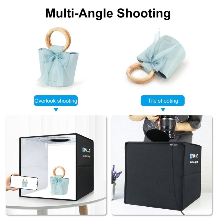 - მრავალმხრივი გადაღება: ყუთს აქვს წინა და ზედა (Overhead) ღიობები, რაც საშუალებას გაძლევთ გადაიღოთ ნივთები სხვადასხვა რაკურსით.
