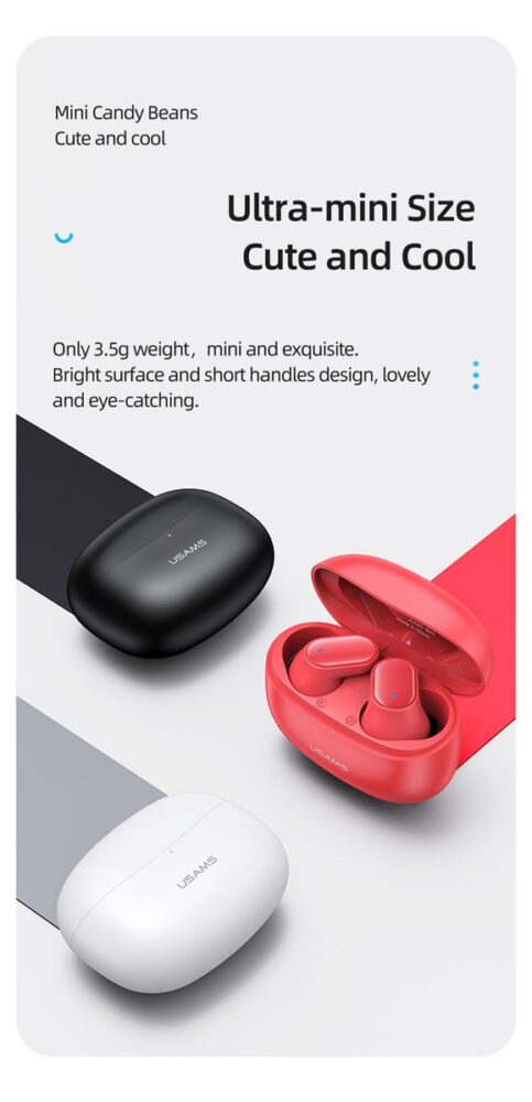 Usams ის ფირმის მაღალი ხარისხის ბლუთუზ ყურსასმენი. იდეალურია როგორც მუსიკების მოსასმენად, ასევე სალაპარაკოდ. (პირადი რეკომენდაცია ჩვენი გუნდისგან)