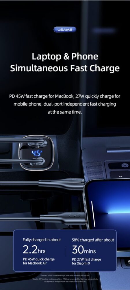 US-CC154 C29 45W მანქანის სწრაფი დამტენი 2 x USB შესაერთებლით