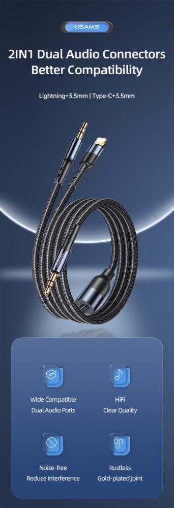 US-SJ555 USAMS 2IN1 3,5mm+Type-C to 3,5mm Audio Cable 1,2M