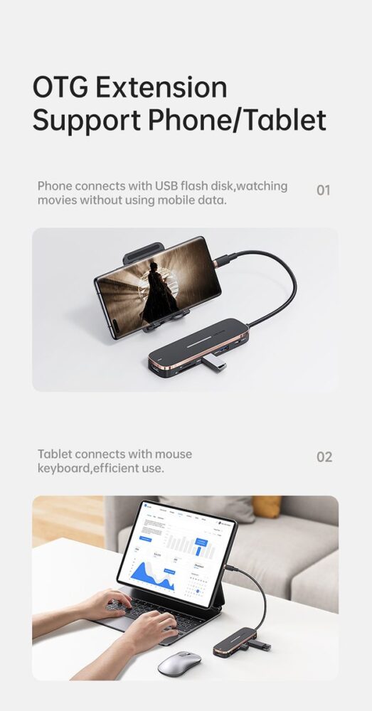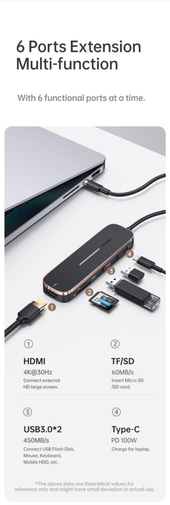 US-SJ578 5in1 Multifunctional Type-C HUB (3 USB+Type-C+HDMI Ports)