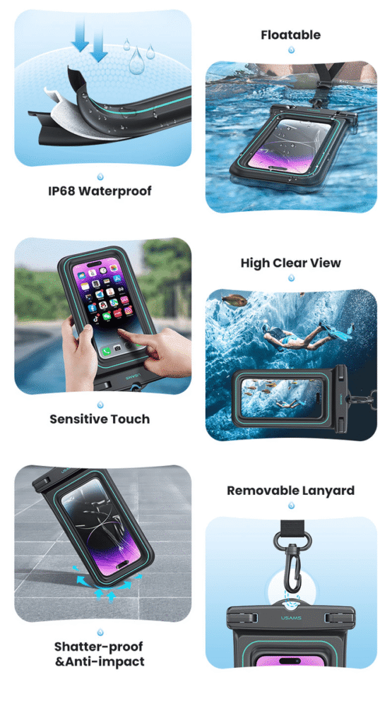 USAMS წყალგაუმტარი ჩანთა ტელეფონისთვის (6.7 ინჩი)